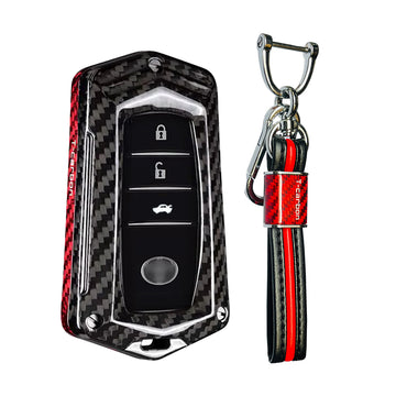 T-carbon genuine carbon fibre key cover and keychain compatible for Innova Crysta, HyCross, Hilux, Fortuner, Legender, Land Cruiser, Camry 2/3 button smart key (TCarbon18)