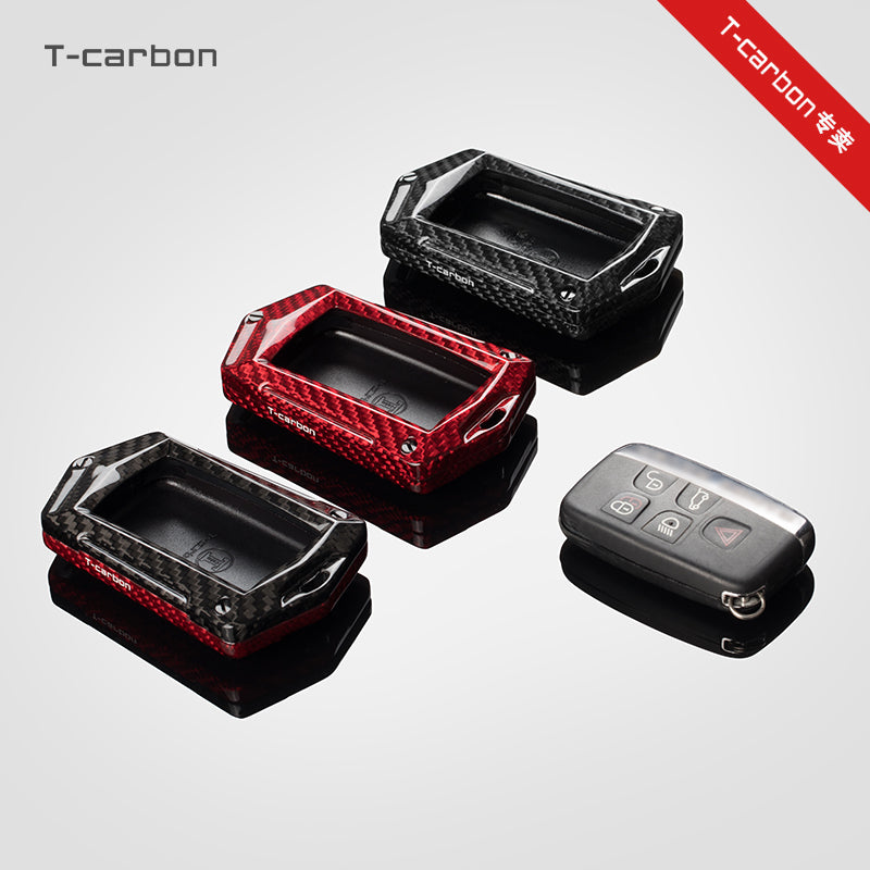 T-carbon genuine carbon fibre key cover and keychain Compatible for Jaguar / Range Rover Evoque Velar Discovery LR4 Land Rover Sport XF XJ XE F-PACE F-Type 5 Button Smart Key (TCarbon72)