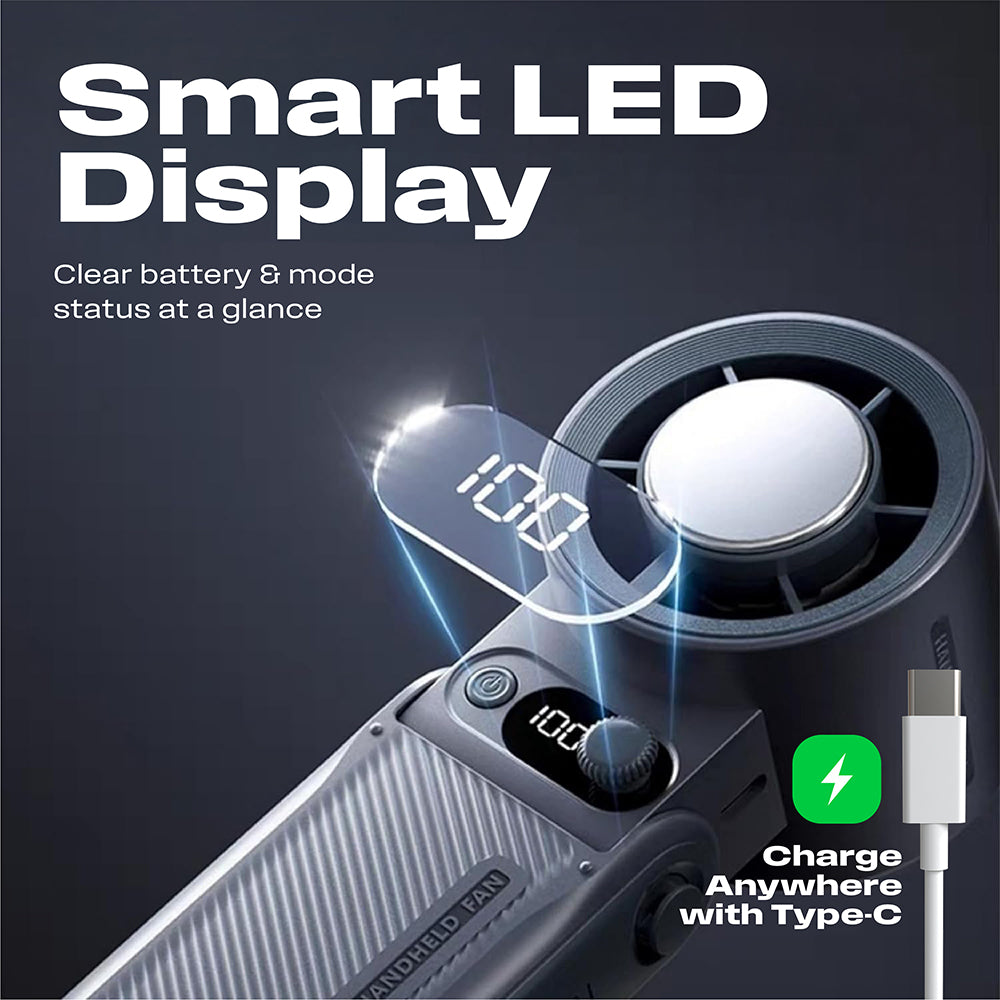 • Long-Lasting Rechargeable Battery – Equipped with a Type-C fast charging port and smart battery management, ensuring hours of uninterrupted cooling anywhere you go.