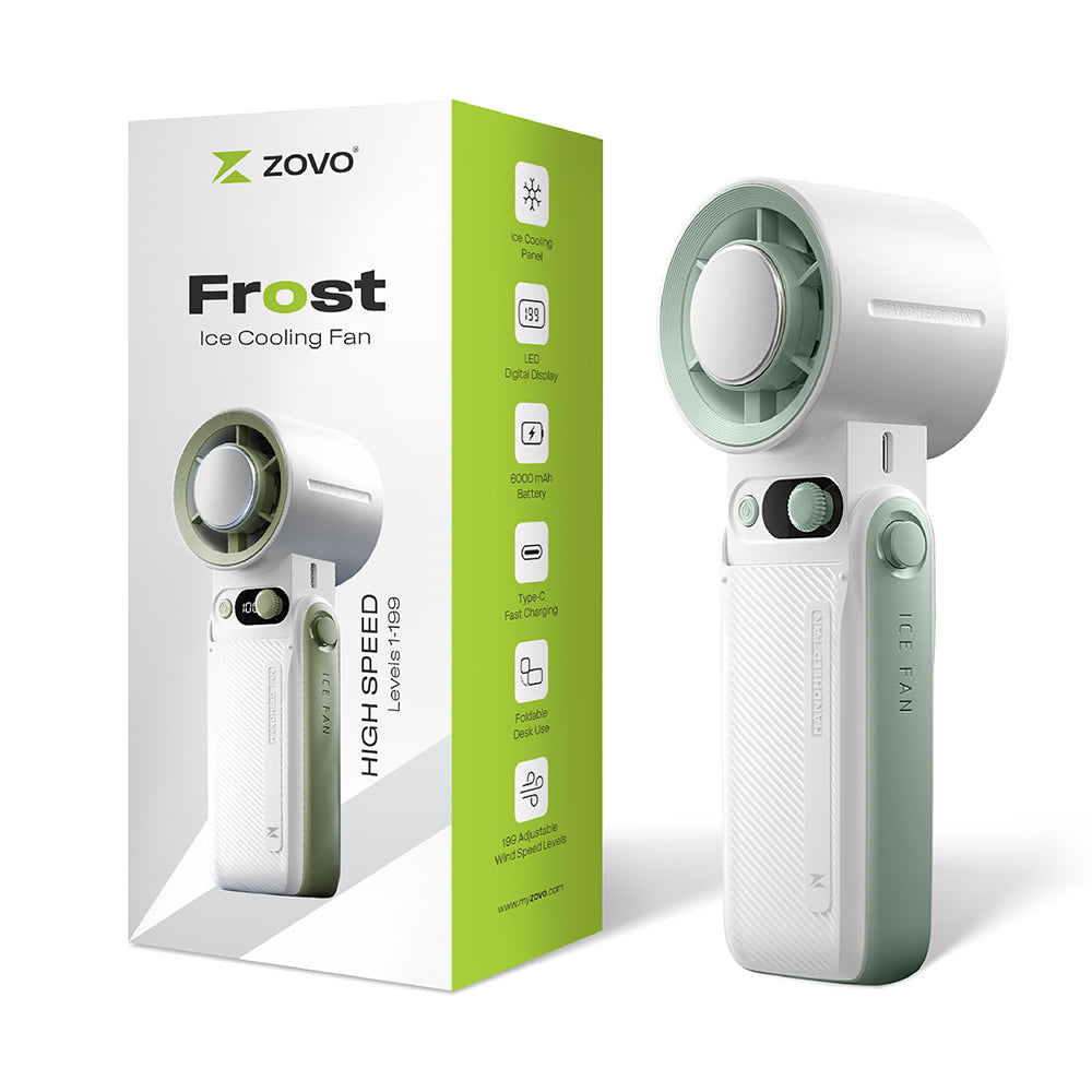 ZOVO Frost Portable Ice Cooling Fan, 13000 RPM | 6000 mAh USB Rechargeable Battery Up to 30H | LED Digital Display | 1-199 Speed | For Travel, Office, Shopping, Concerts & Outdoor